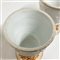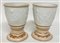 Coppia di vasi in porcellana, la fascia decorata a putti danzanti in biscuit in rilievo. Basi e fasce policrome dipinte a motivi geometrici e stilizzati (h. cm 23) (lievi difetti e restauro)