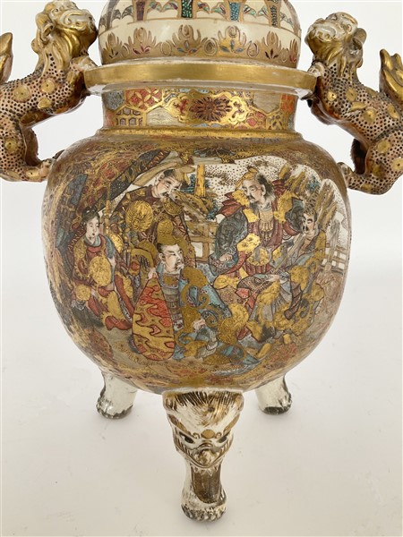 Vaso biansato in porcellana Satsuma, con coperchio Giappone, secolo XIX, Period