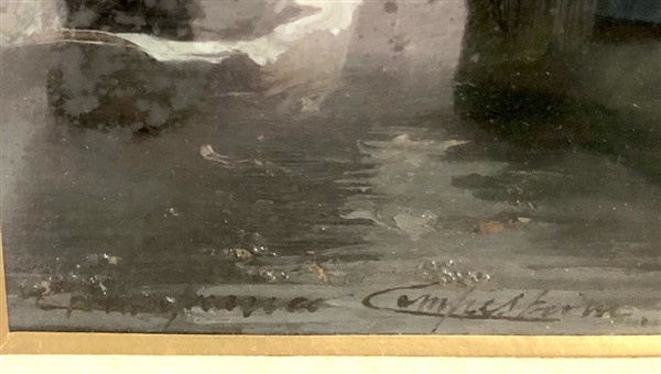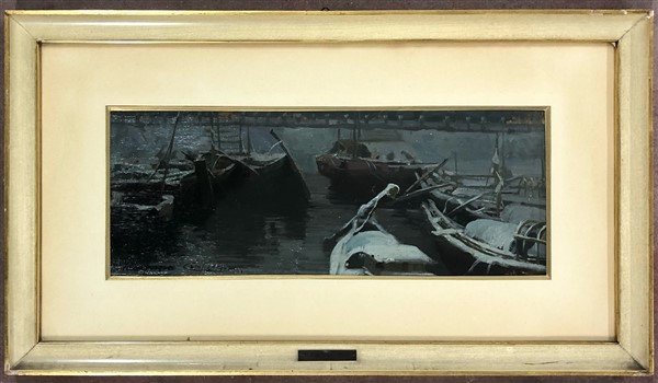 Gianfranco Campestrini "Neve in laguna" olio su cartone (cm 18x46) Firmato in