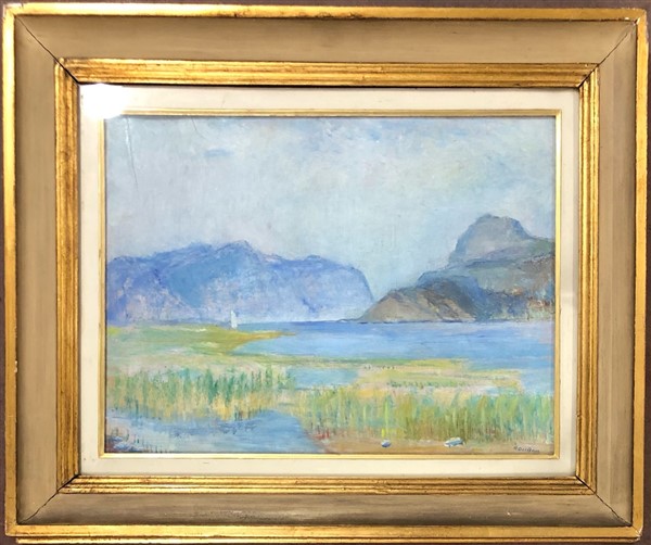 Angelo Del Bon "Sirmione" olio su compensato (cm 37x48) Firmato in basso a dest