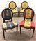 Lotto composto da una coppia di poltrone e una coppia di sedie in legno intagliato, braccioli terminanti a ricciolo, seduta e schienale a medaglione rivestiti in raso di seta (difetti)