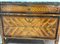 Cassettone lastronato e intarsiato in legni vari. Fronte centrato da vaso tra g