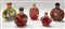 Lotto di cinque snuff bottles in vetro bianco e rosso