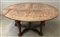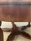 Tavolo con piano circolare, gambe mosse terminanti a piede ferino riunite da traverse sagomate a raggiera. Secolo XIX (d. cm 150; h. cm 80) (difetti) Dotato di piano sovrapponibile incernierato di maggiore dimensione