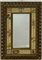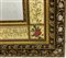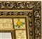 Specchiera in legno intagliato e dorato a volute e foglie con riserve dipinte a