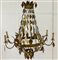 Lampadario a otto luci in metallo dorato con pendenti a specchio (h. cm 120) (difetti)