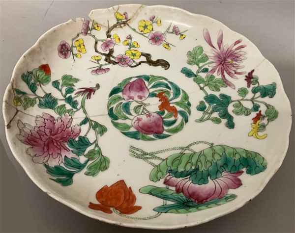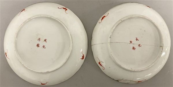 Lotto composto da un grande piatto ed una coppia di piatti in porcellana Famigl