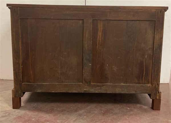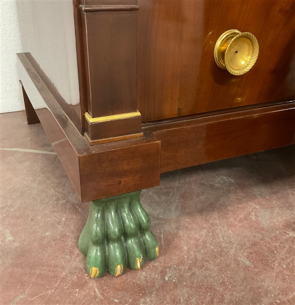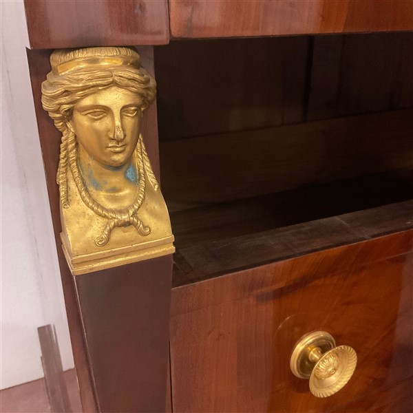 Cassettone Impero in piuma di mogano a quattro cassetti di cui uno a mezza lung
