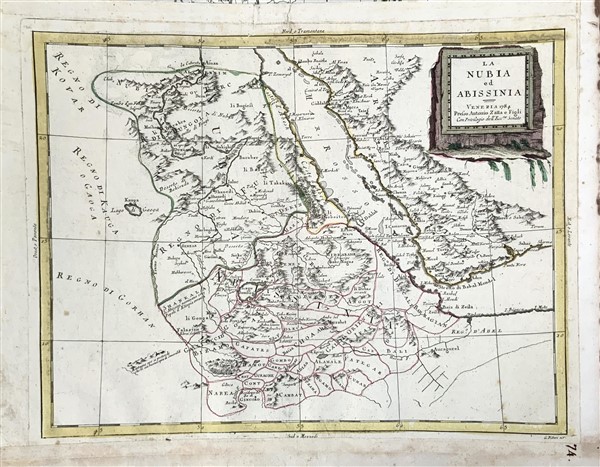[MAPPE - AFRICA - ZATTA]. Lotto composto da tre mappe incise in rame dallo Zatta nel 1784 intitolate "La Nubia ed Abissinia", "l'Egitto antico e moderno" e "La Guinea Orientale". (375 x 466mm). Colorate a mano all'epoca (difetti) [3]
