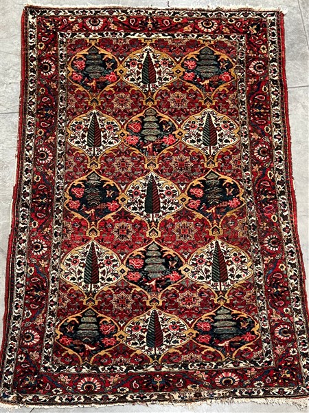 Tappeto Bachtiari, Persia, secolo XX. Decoro a giardino policromo (cm 200x139) (difetti e rotture)
