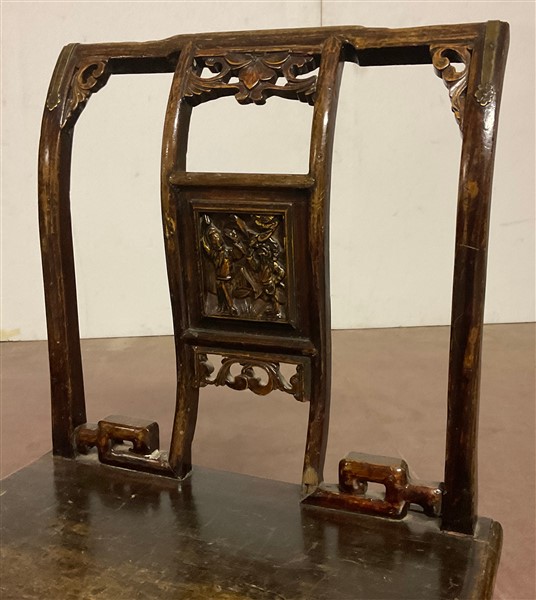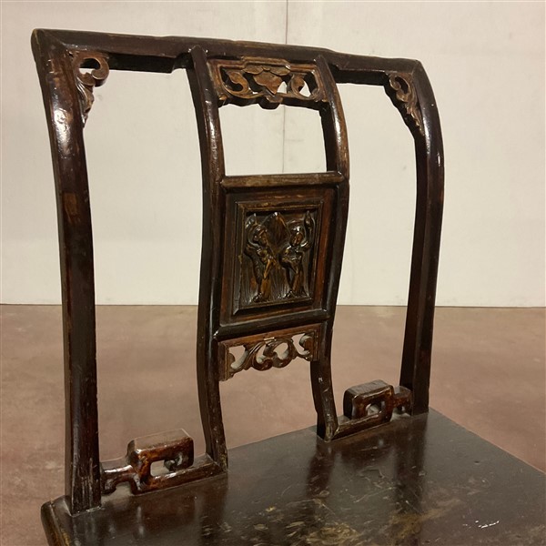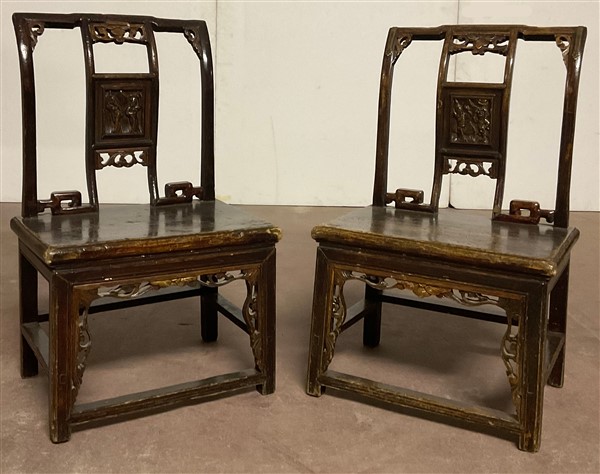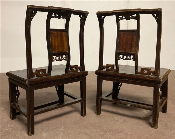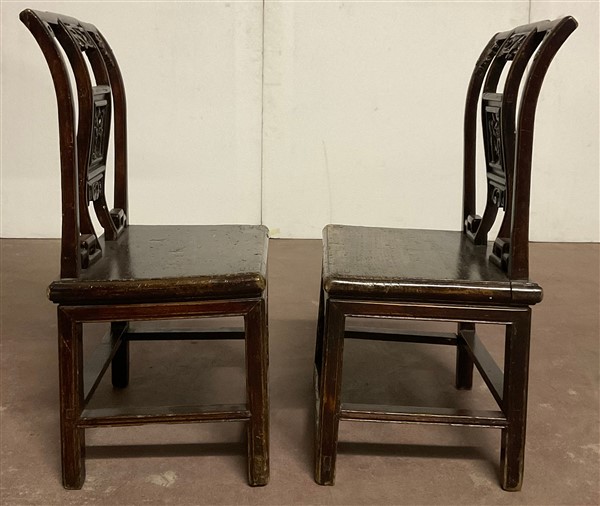 Coppia di piccole sedie in legno con schienale traforato Cina, secolo XIX - XX