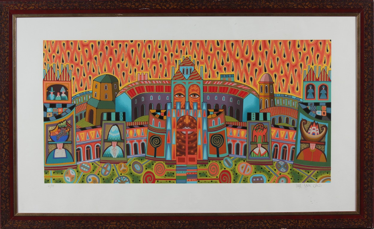 DALL'OLIO LUCA (n. 1958) Paesaggio incantato. Serigrafia. Cm 120,00 x 70,00. Misure lastra:50x100 cm. Tir. 41/99 e firma in basso a matita. In allegato all'opera certificato di autenticità a cura di Telemarket, Roncadelle (BS). Cornice presente