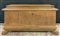 Antica cassapanca ad urna in noce intagliata a motivi vegetali, scanalature e b