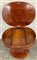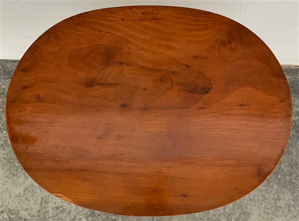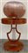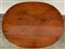 Tavolino lastronato in mogano. Piano apribile e base ovale. Sostegno a forma di