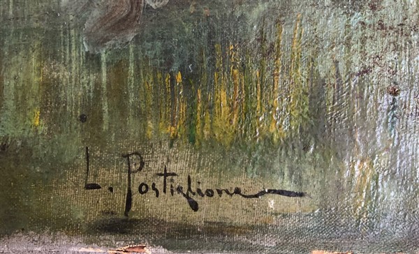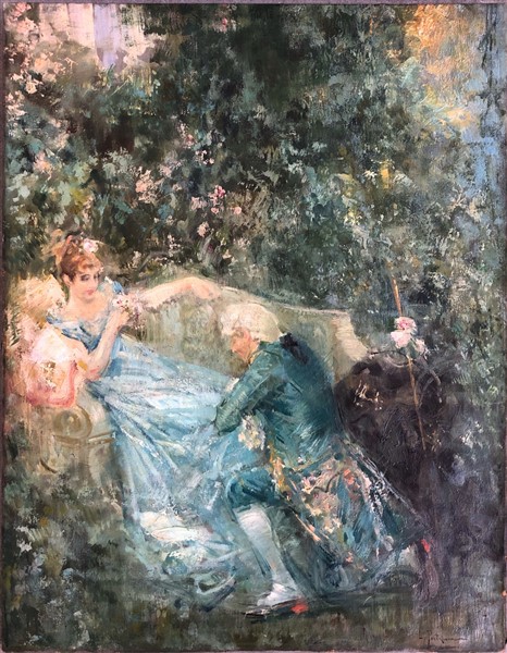 Luca Postiglione "Scena galante" olio su tela (cm 75x60) Firmato in basso a des