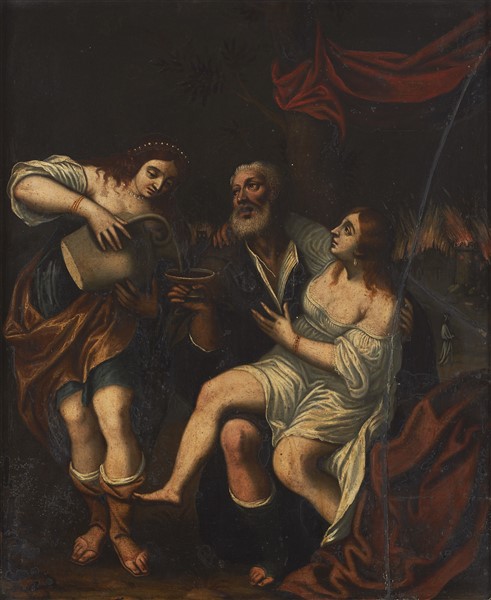 Scuola toscana del XVII secolo, Lot e le figlie, olio su lavagna (cm 53x44,5) i