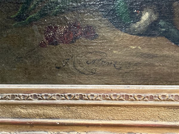 "Composizione con anatra, ortaggi e lamponi" olio su tela (cm 50x76) Firmato in basso a sinistra. In cornice