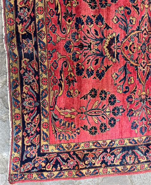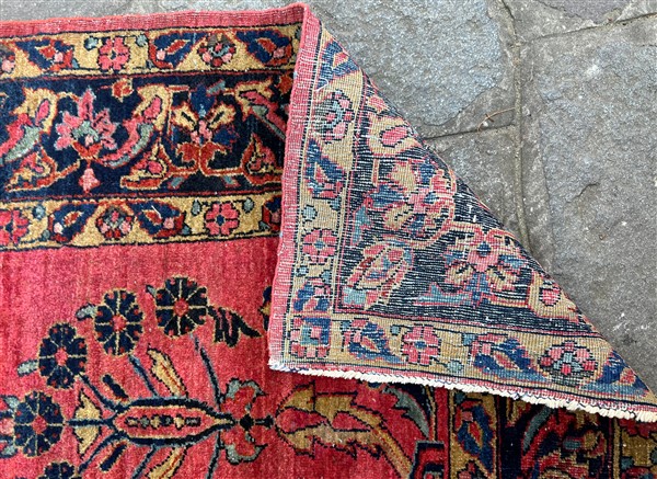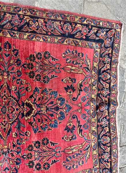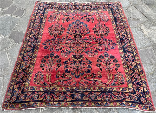 Tappeto Lilian, Persia, secolo XX. Decoro floreale nei toni del blu, azzurro e crema su fondo rosa (cm 184x169) (lievi difetti)