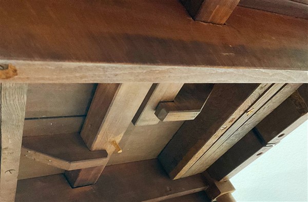 Tavolo a bandelle allungabile in mogano con gambe tornite e scanalate terminant