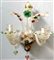 Coppia di applique in vetro policromo con inclusioni in oro a due bracci con foglie e fiori e raccordi a catenella. Murano, secolo XX (h. cm 48) (difetti e mancanze)