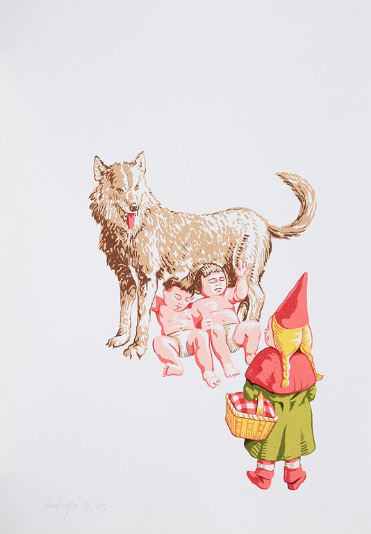 CUOGHI VANNI (n. 1966) Tutt' un'altra storia. 2008. Serigrafia su carta. Cm 35,00 x 50,00. Misure lastra: 31x21 cm. Firma e tir. 116/125 in basso a matita. Timbro a secco Seriarte, Bergamo in basso.