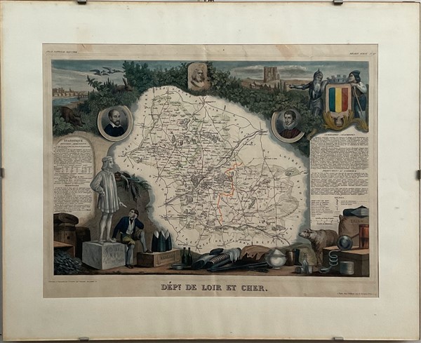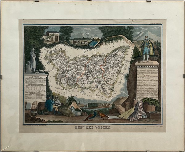 [MAPPE - FRANCIA] - Coppia di carte geografiche acquerellate raffiguranti i dipartimenti francesi della Loira e Cher e del Vosgi dall'Atlante Nazionale illustrato (cm 32x43) sotto vetro picoglass