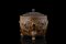 A brown glazed tripod censer, dragons relief, carved wood cover