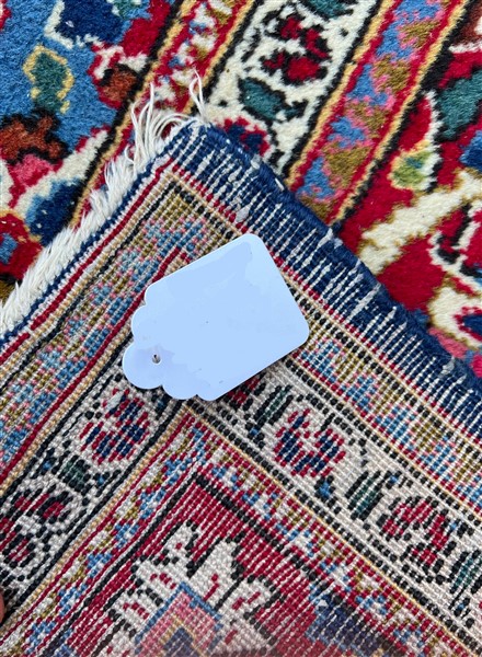 Tappeto meccanico di recente manifattura. Decorato da medaglioni ottagonali su