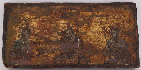Lotto 1686 | Ignoto Antico dipinto raffigurante Cristo tra due Santi Olio su tavola, cm 12x