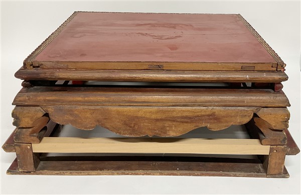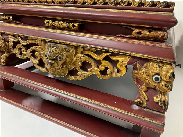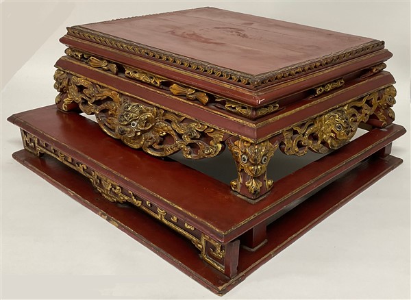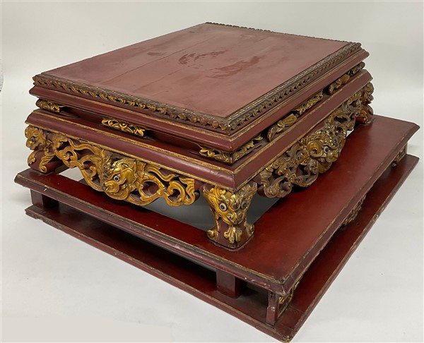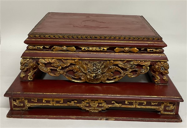 Lotto 1687 | Grande base in legno laccato rosso e dorato Cina, secolo XX (cm 71x30x62,5) (