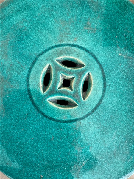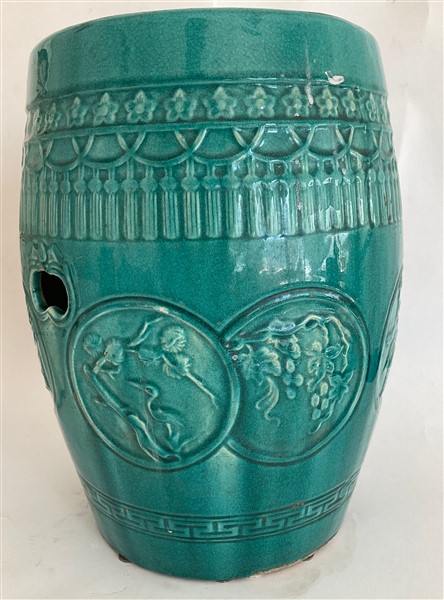Lotto composto da un garden seat in porcellana invetriata verde smeraldo, un va