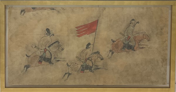 Parte di dipinto su carta raffigurante cavalieri , in cornice Cina, secolo XX