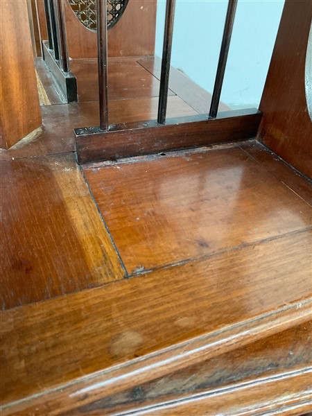 Libreria in mogano, parte superiore girevole, parte inferiore a quattro gambe t