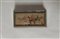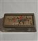 Scatola in vetro con interno a tre scomparti e coperchio decorato a scena equestre (cm 11,5x3,6x6) (difetti)