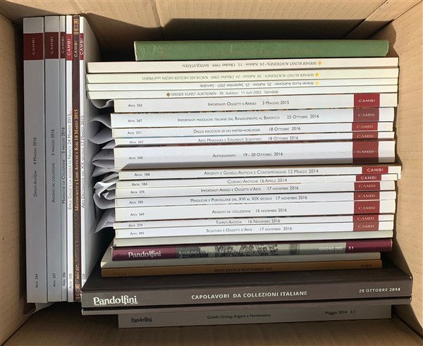 Lotto 1721 | Lotto composto da tre cartoni contenenti diversi cataloghi d'asta di vario gene