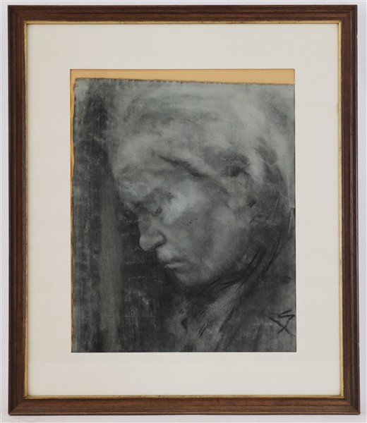 "Ritratto di profilo" carboncino su carta (cm 39x30) firmato in basso a destra