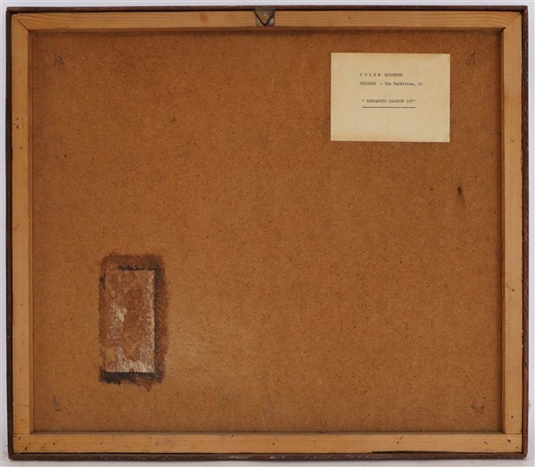 "Paesaggio carsico II" olio su tela applicata su masonite (cm 40,5x49,5) firmato in basso a destra; etichetta con i dati dell'opera al verso