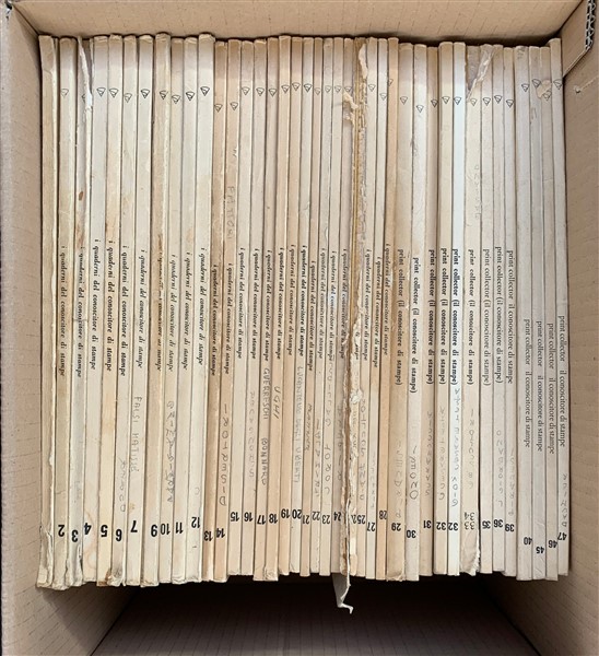Lotto composto da un cartone contenente vari fascicoli de "I quaderni del conoscitore di stampe", uno con diverse riviste di AD e uno con cataloghi d'asta e di mostre diverse