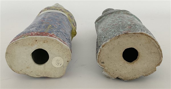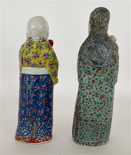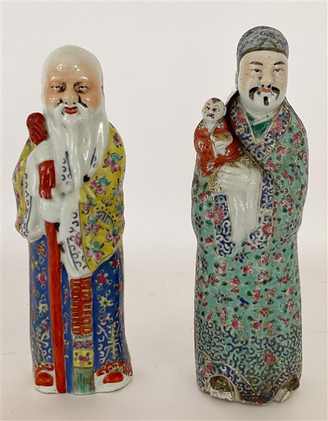 Due figure orientali in porcellana Famiglia Rosa raffiguranti saggi
