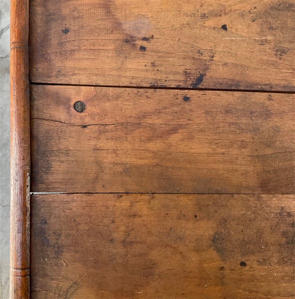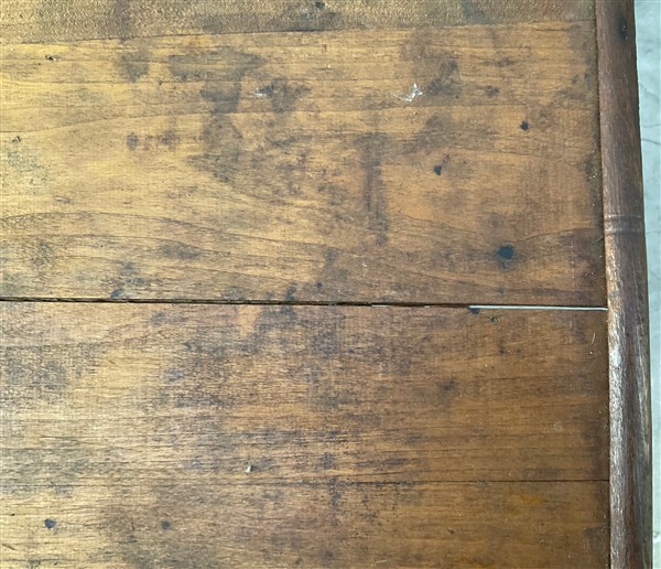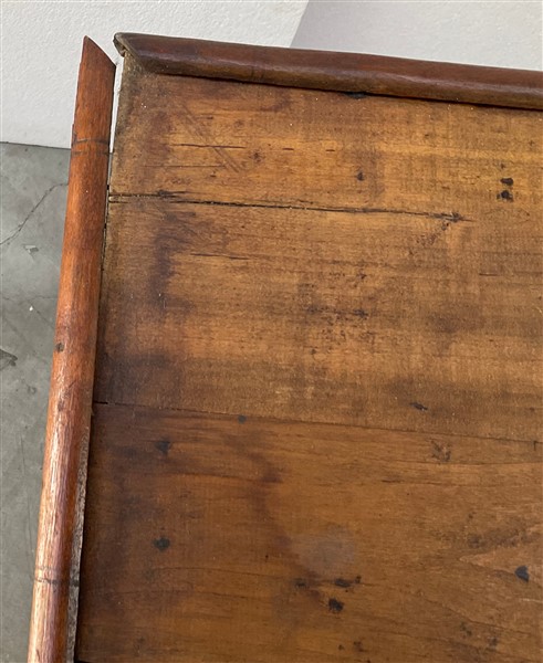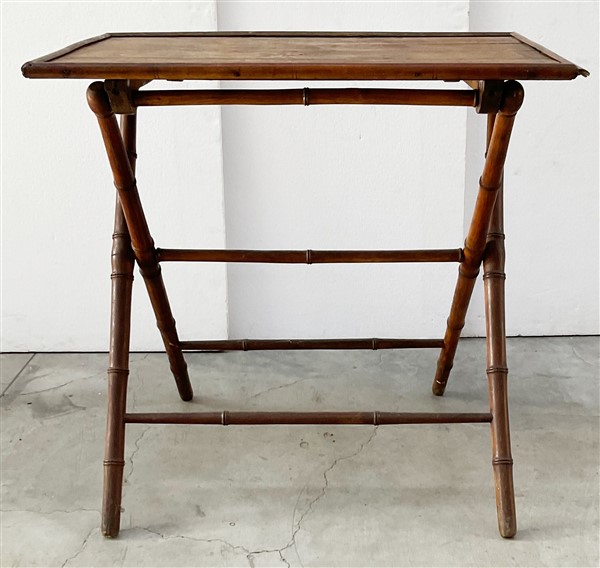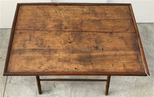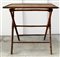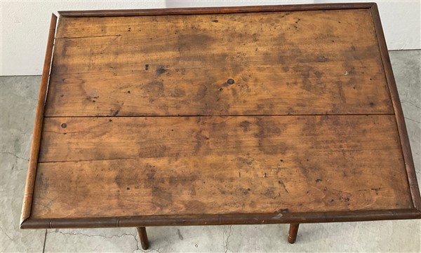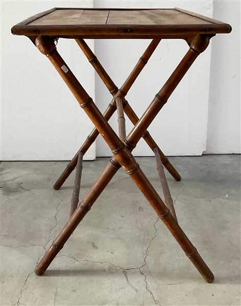 Tavolino in legno con gambe e profilo del piano simulante bamboo (cm 70x70x46). (difetti)