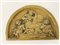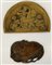 Lotto composto da due placche in bronzo, una a mezza luna con figure allegorich