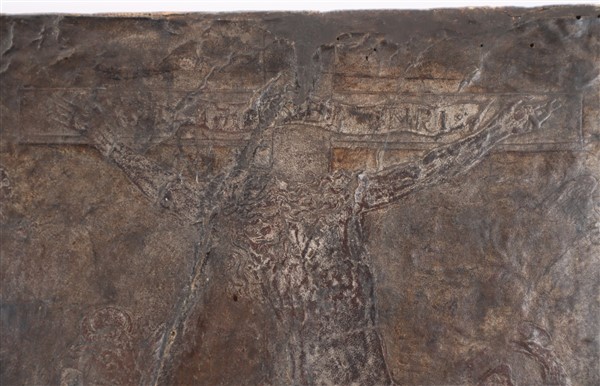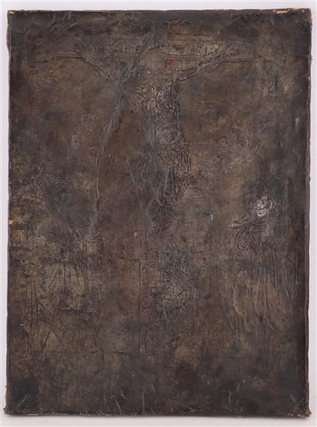 Ignoto Antico dipinto raffigurante Cristo crificisso Olio su cuoio, cm 44x32,5