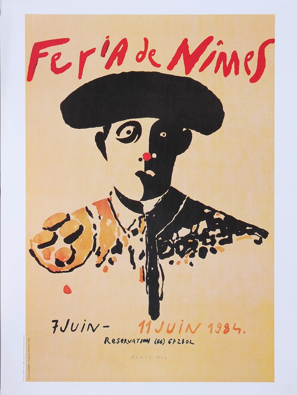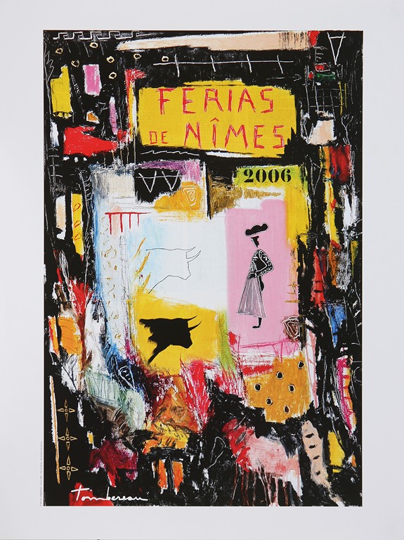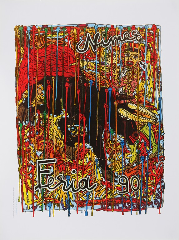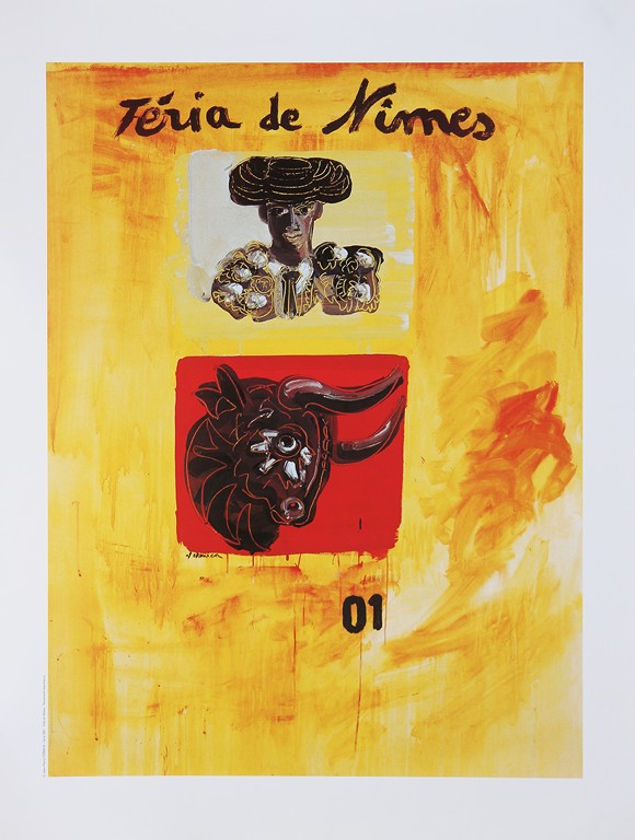 AUTORI VARI Feria a Nimes. . Poster. . Lotto composto da una cartella contenente n.15 poster datati tra il 1984 e il 2011: autori: Bacon, Cucchi, Clement, Combass, Pires, Tombrereau, Viallat, Formica, De Leon, Arman, Espla, Blais, Barcelo, Arroyo, Schnabel ed una litografia: 34/100, firma a matita Kelli Bedrossian e data 1999 in basso,