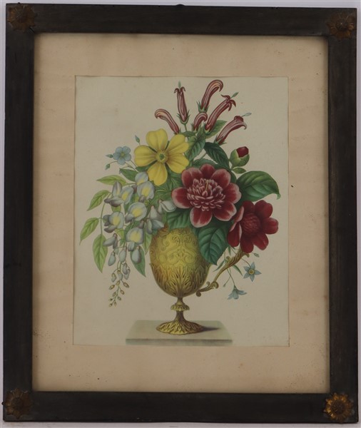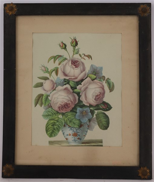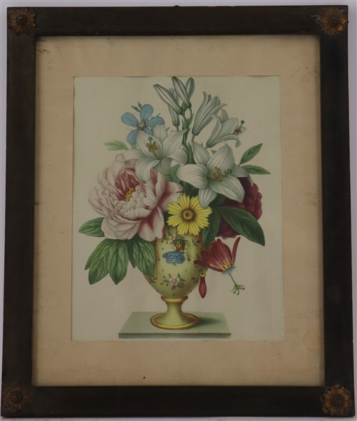 Lotto composto da tre stampe a colori raffiguranti vasi fioriti (cm 28x22) in cornice (difetti)