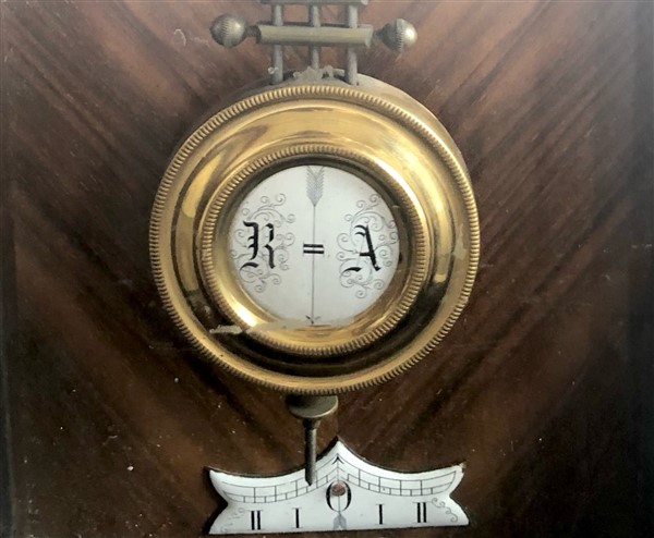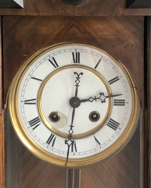 Orologio da parete con cassa in legno e vetri. Quadrante in smalto bianco a cif