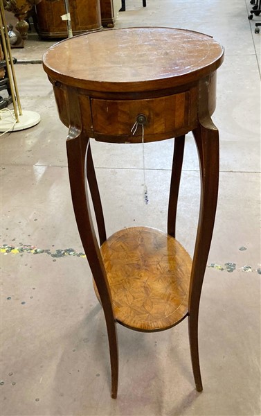 An 18th-century veneered centre table with a drawer and an extractable shelf (cm 45x73x32) (defects)