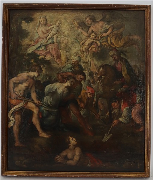 Scuola del secolo XVIII Seppellimento di Sante Olio su tela, cm 68,5x58 In cor