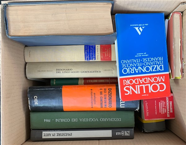 Lotto composto da un cartone contenente dizionari vari e uno contenente varie e