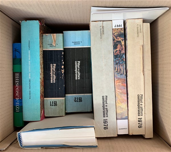 Lotto composto da un cartone contenente dizionari vari e uno contenente varie edizioni de "Il quadrato"