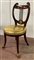 Gruppo di due poltrone (L. max cm 63) e quattro sedie in mogano e legno dorato